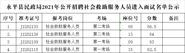永平縣民政局2021年公開招聘社會救助服務(wù)人員進入面試名單公示