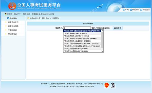 通過(guò)點(diǎn)擊“選擇職位”選項(xiàng),可以跳轉(zhuǎn)到選擇報(bào)考職位界面,如下圖所示:
