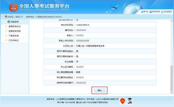 通過(guò)點(diǎn)擊“報(bào)名信息確認(rèn)”按鈕后,跳轉(zhuǎn)到報(bào)名信息確認(rèn)頁(yè)面,如下圖所示: