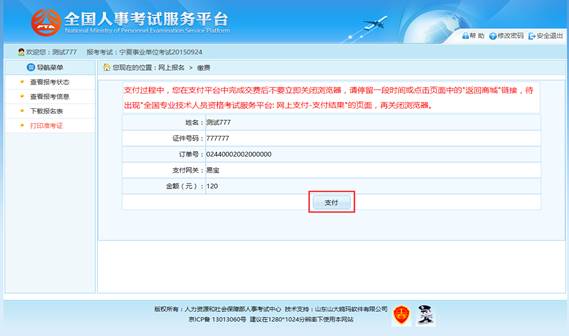 審核通過(guò)的考生可以進(jìn)行網(wǎng)上繳費(fèi),點(diǎn)擊報(bào)考流程中“網(wǎng)上繳費(fèi)”選項(xiàng),可以進(jìn)