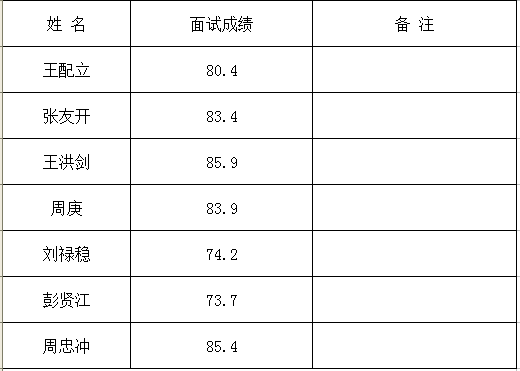 根據(jù)2014年馬關(guān)縣公安消防大隊(duì)公開招聘消防協(xié)管員實(shí)施方案及招聘公告要求,招聘領(lǐng)導(dǎo)小組于2014年10月29日組織進(jìn)入面試考生進(jìn)行面試,現(xiàn)將面試成績(jī)公告如下: