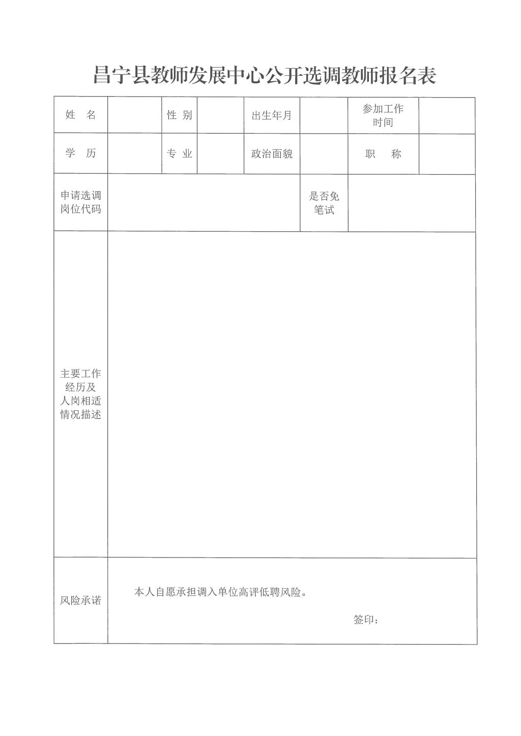 2.昌寧縣教師發(fā)展中心公開選調(diào)教師報名表