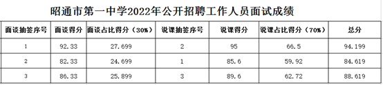 附:昭通市第一中學(xué)2022年公開(kāi)招聘工作人員面試成績(jī)