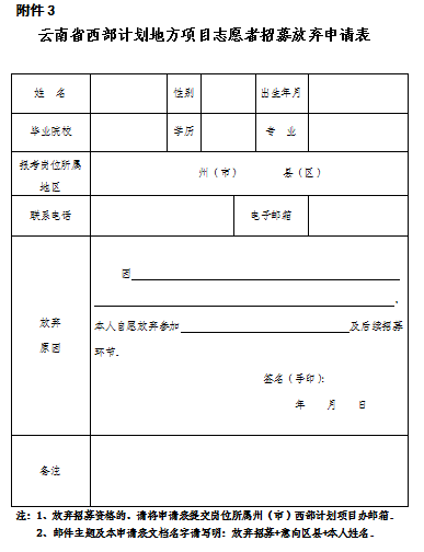 3.云南省西部計(jì)劃地方項(xiàng)目志愿者招募放棄申請(qǐng)表(點(diǎn)擊文末“閱讀原文”,輸入密碼ooia下載)
