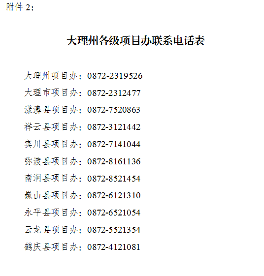 2.大理州各級(jí)項(xiàng)目辦聯(lián)系電話表