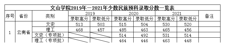 2019年—2021年文山學(xué)院??其浫》?jǐn)?shù)一覽表