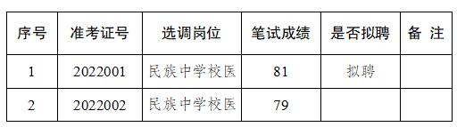 2022年麻栗坡民族中學(xué)公開選調(diào)校醫(yī)筆試成績及擬聘人員名單公示