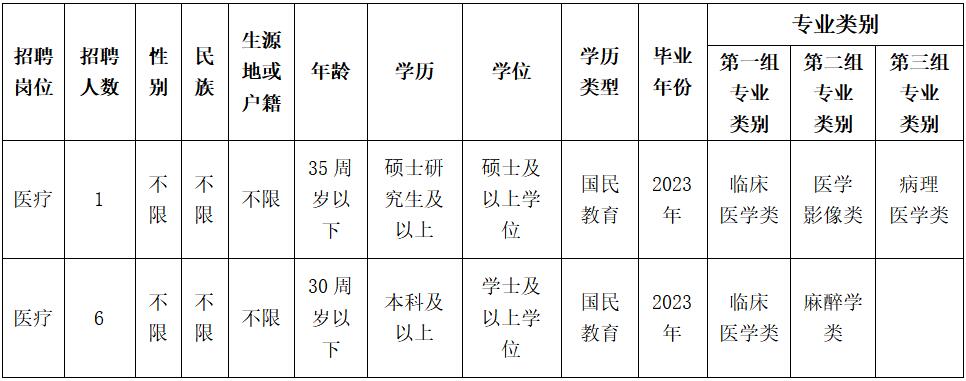高等院校醫(yī)學(xué)類本科及以上學(xué)歷畢業(yè)后直接參加國(guó)家計(jì)劃內(nèi)住院醫(yī)師規(guī)范化培訓(xùn),2023年國(guó)家住院醫(yī)師規(guī)范化培訓(xùn)合格且具有國(guó)家執(zhí)業(yè)醫(yī)師資格,參加醫(yī)療衛(wèi)生行業(yè)招聘醫(yī)學(xué)類崗位的,視為2023年度應(yīng)屆畢業(yè)生(資格復(fù)審時(shí)須提供成績(jī)單、合格證明,否則取消聘用資格)。