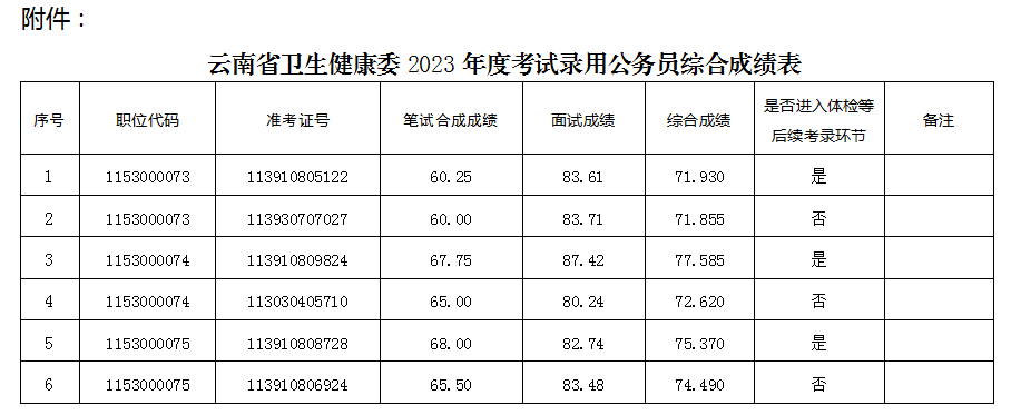 附件:云南省衛(wèi)生健康委2023年度考試錄用公務(wù)員綜合成績表