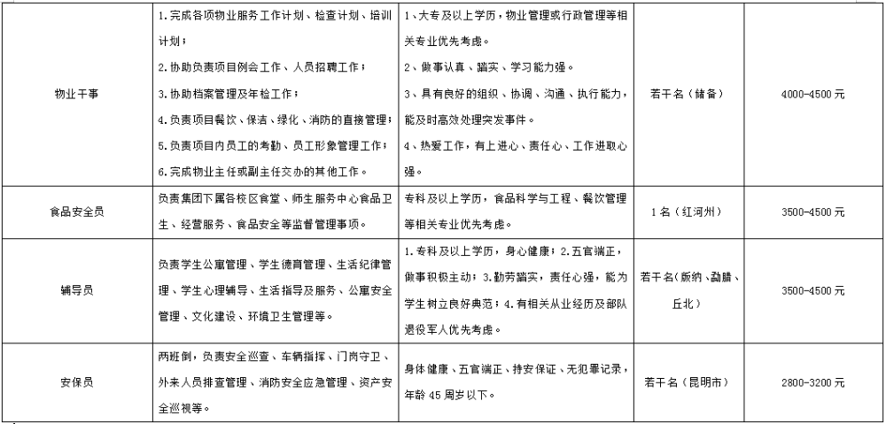 云南長水后勤服務有限公司崗位招聘公告