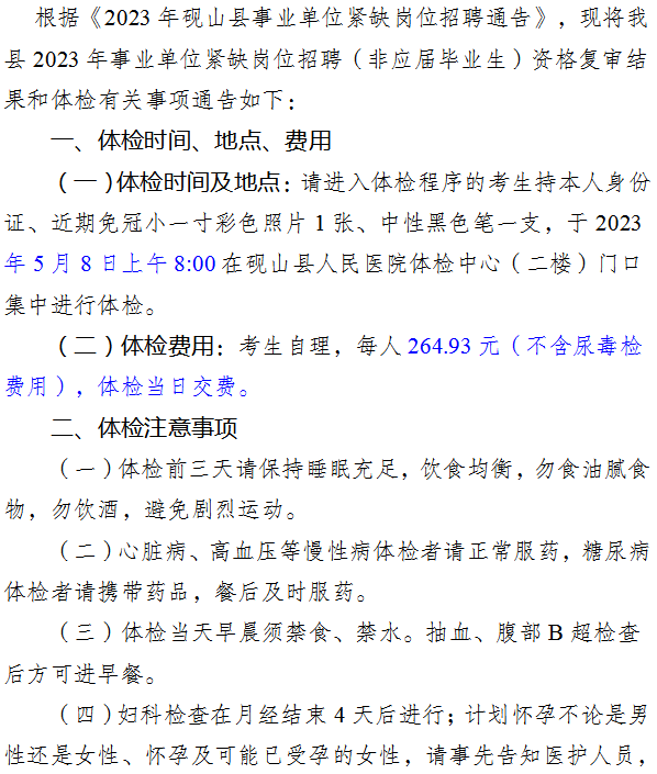 2023年硯山縣事業(yè)單位緊缺崗位招聘(非應(yīng)屆畢業(yè)生)資格復(fù)審結(jié)果及體檢有關(guān)事項(xiàng)的通告