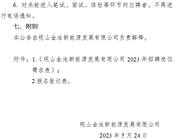 硯山金池新能源發(fā)展有限公司2023年公開(kāi)招聘工作人員的公告