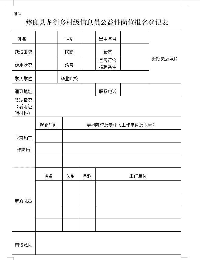 附件:彝良縣龍街鄉(xiāng)村級信息員公益性崗位報名表