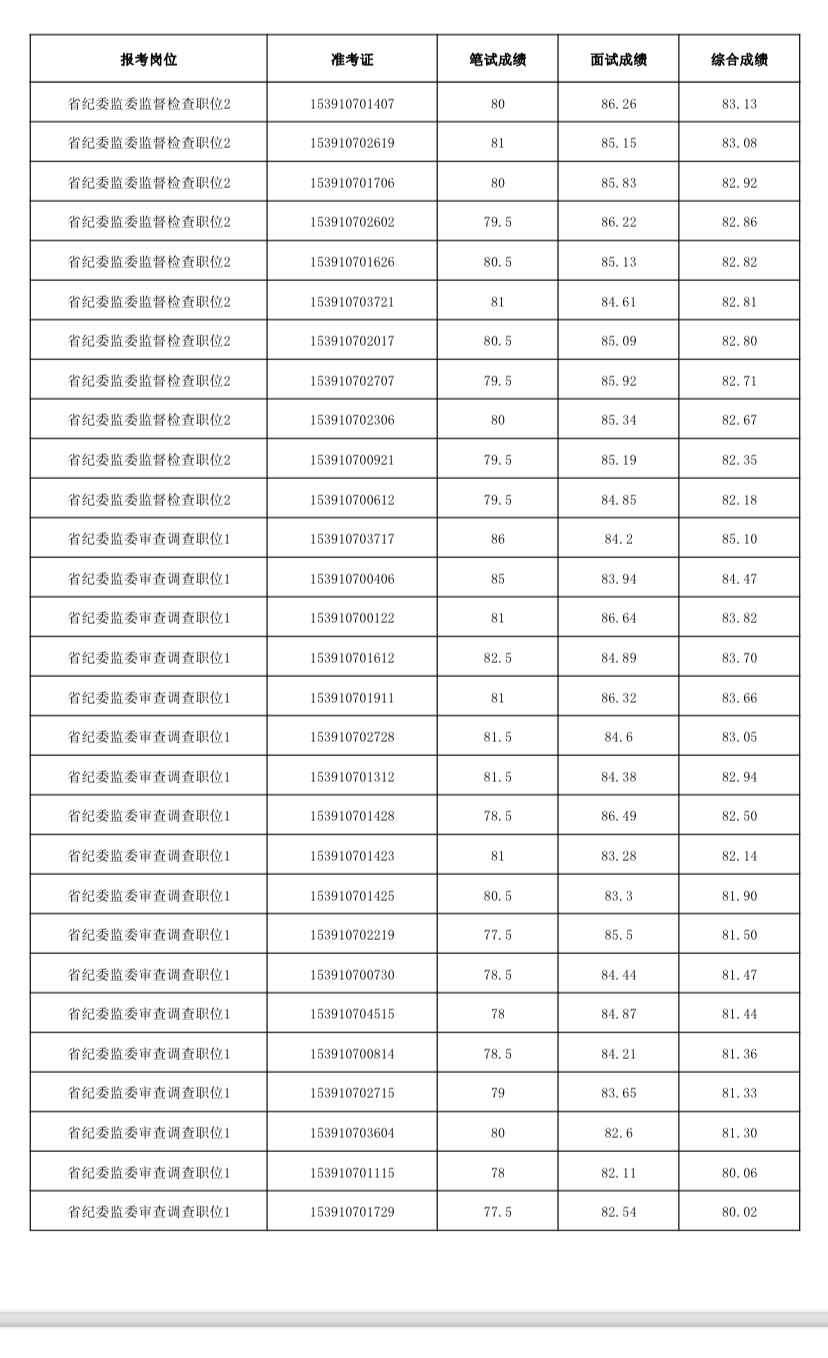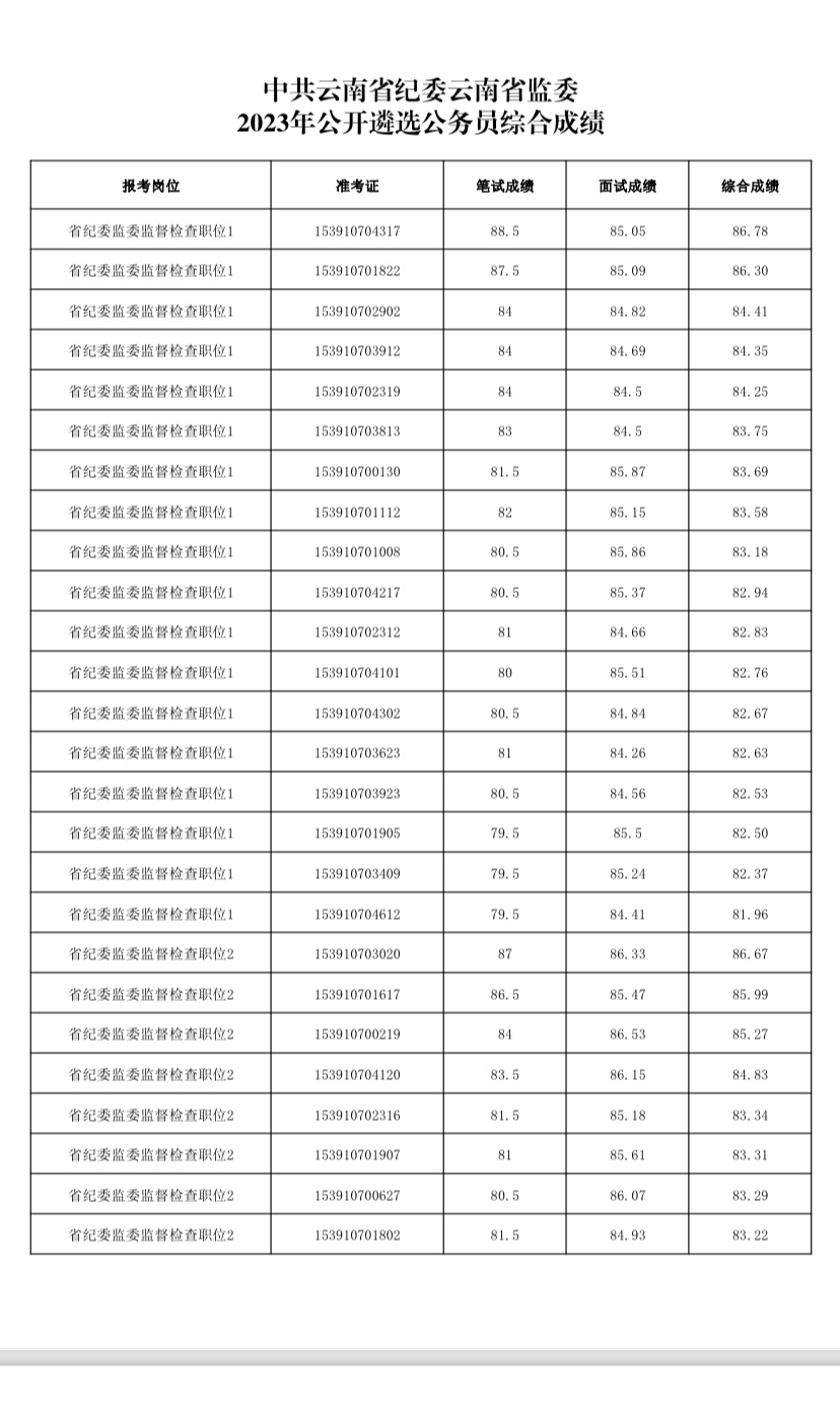 附件:中共云南省紀(jì)委云南省監(jiān)委2023年公開遴選公務(wù)員綜合成績