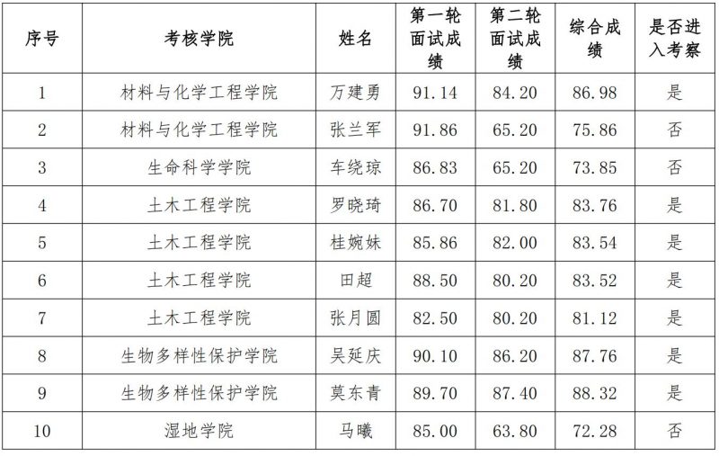 西南林業(yè)大學(xué)2023年6月26日公開招聘面試成績及進入考察人員公示