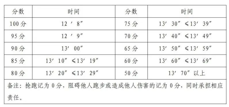 2.跑步100米,占比實(shí)操成績(jī)滿分的30%。
