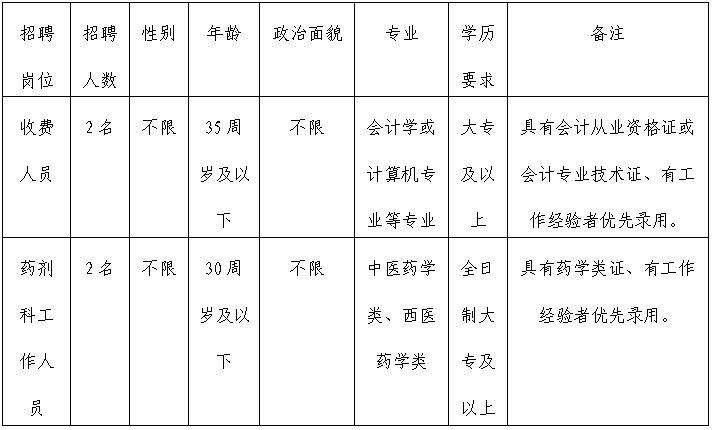 附件:元陽縣中醫(yī)醫(yī)院合同制人員招聘崗位表