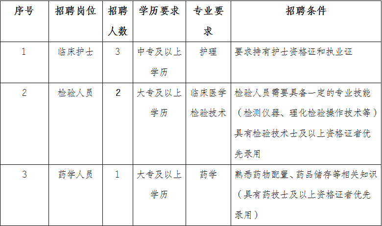 為滿足金平縣勐橋鄉(xiāng)中心衛(wèi)生院基本公共衛(wèi)生和基本醫(yī)療服務(wù)工作需求,我院面向社會(huì)公開(kāi)招聘編外工作人員6名?,F(xiàn)公告如下: