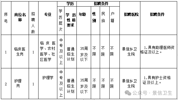景信鄉(xiāng)衛(wèi)生院招聘公告
