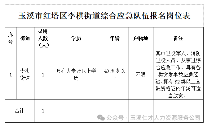 7.具體條件參照紅塔區(qū)李棋街道綜合應急隊伍報名崗位表。