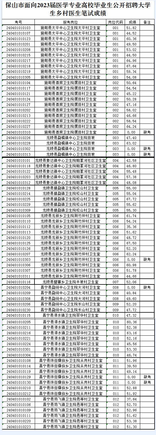 附件:保山市面向2023屆醫(yī)學(xué)專業(yè)高校畢業(yè)生公開招聘大學(xué)生鄉(xiāng)村醫(yī)生筆試成績(jī)