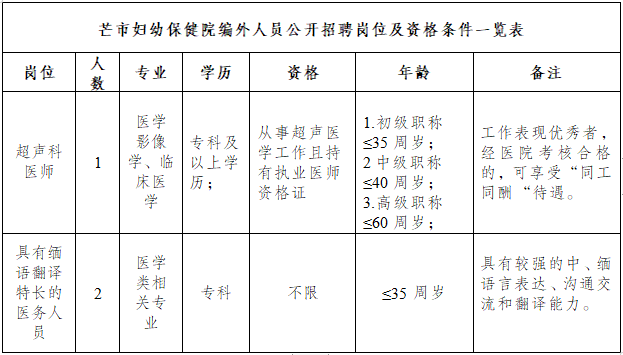 芒市婦幼保健院2024年第二批編外醫(yī)務(wù)人員招聘通告