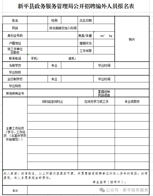 4.附:新平縣政務服務管理局公開招聘編外人員報名表。