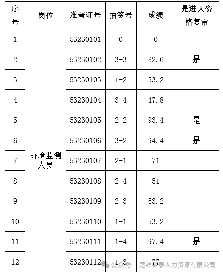 2024年勞務(wù)派遣人員實(shí)驗(yàn)室操作考核成績及進(jìn)入資格復(fù)審人員公示