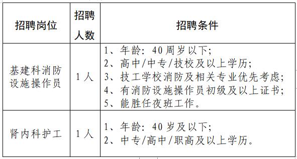 【招聘】基建科、腎內科需招聘勞務派遣工作人員2名