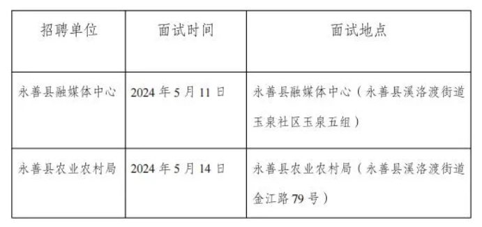 根據(jù)《昭通市2024年事業(yè)單位公開招聘優(yōu)秀緊缺專業(yè)技術人才實施辦法》和《昭通市永善縣2024年事業(yè)單位公開招聘優(yōu)秀緊缺專業(yè)技術人才通告》精神,現(xiàn)將永善縣2024年事業(yè)單位公開招聘優(yōu)秀緊缺專業(yè)技術人才面試有關事項通告如下: