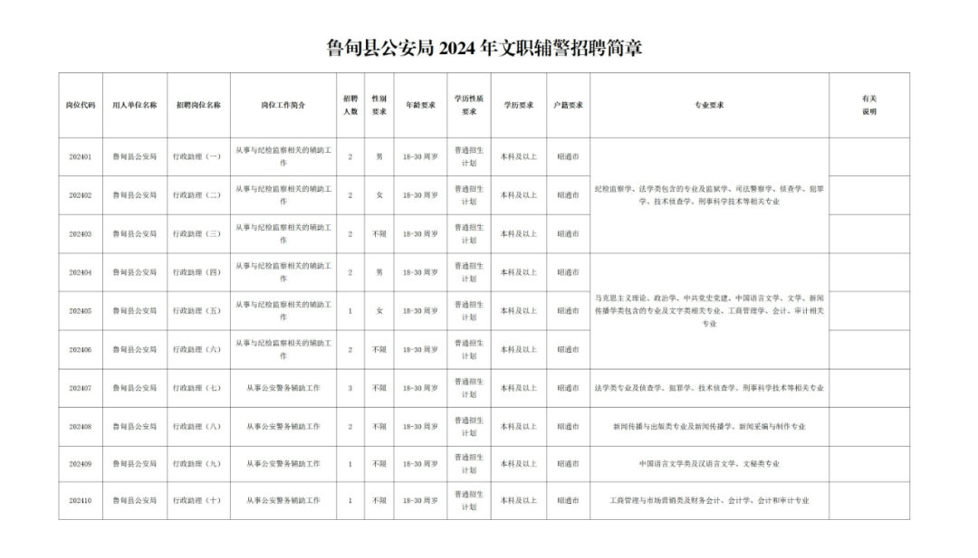 魯?shù)榭h公安局2024年文職輔警招聘公告