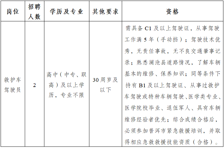 瀾滄縣中醫(yī)醫(yī)院急救車專職駕駛員招聘公告