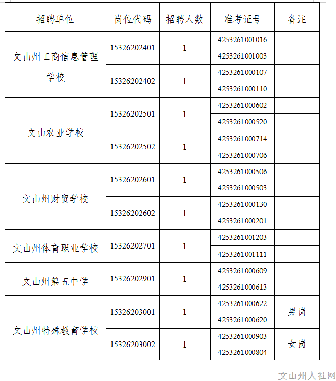 (一)文山州工商信息管理學(xué)校、文山農(nóng)業(yè)學(xué)校、文山州財(cái)貿(mào)學(xué)校、文山州體育職業(yè)學(xué)校、文山州第五中學(xué)教師崗位