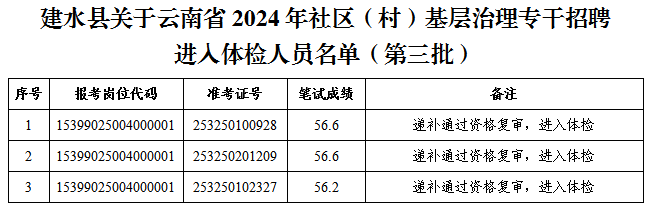 附件:建水縣關(guān)于云南省2024年社區(qū)(村)基層治理專干招聘進(jìn)入體檢人員名單(第三批)