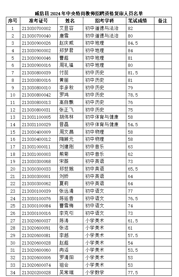 威信縣2024年中央特崗教師招聘資格復(fù)審公告