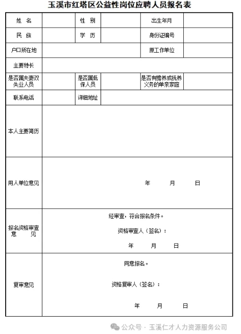 附件:玉溪市紅塔區(qū)公益性崗位應(yīng)聘人員報(bào)名表