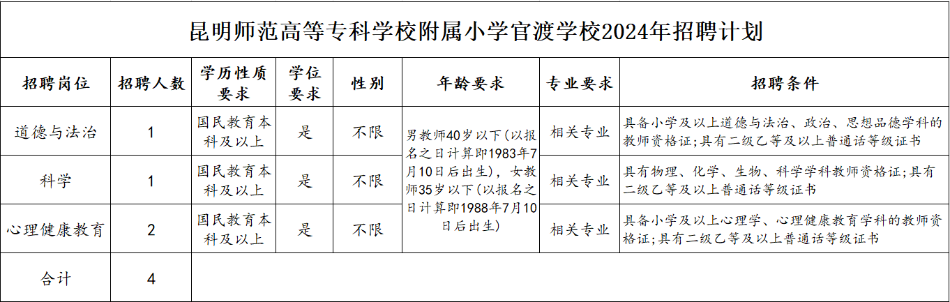 在官渡區(qū)教育體育局的領(lǐng)導(dǎo)下,為保障2024教師招聘工作的順利進(jìn)行,經(jīng)昆明師專附小官渡學(xué)校、昆明師專附小彩云城學(xué)校兩校協(xié)商,按照官渡區(qū)聘用制教師招聘工作指導(dǎo)意見及相關(guān)人事規(guī)定,結(jié)合學(xué)校工作實(shí)際,合并開展2024年度兩校新教師招聘工作。
