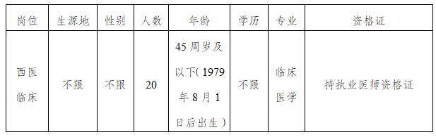 根據(jù)雙柏縣縣域醫(yī)共體縣人民醫(yī)院學(xué)科建設(shè)和業(yè)務(wù)發(fā)展需要,面向社會公開招聘西醫(yī)臨床執(zhí)業(yè)醫(yī)師編外人員20人,現(xiàn)將有關(guān)事項公告如下:
