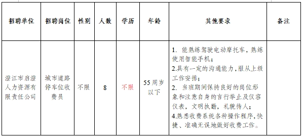 澄江市啟澄人力資源有限責(zé)任公司公開招聘城市道路停車位收費(fèi)員公告