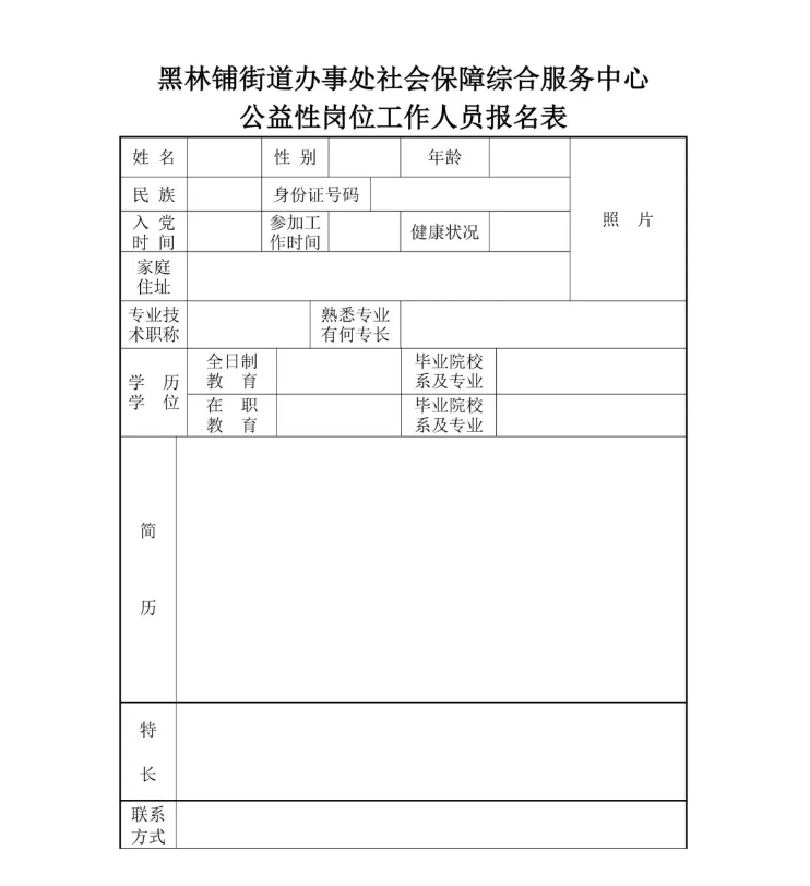 本次招聘城鎮(zhèn)公益性崗位為黑林鋪辦事處社保中心公益崗工作人員3名,男女不限。主要從事簡單公文材料起草、相關(guān)業(yè)務(wù)臺賬資料報送、數(shù)據(jù)統(tǒng)計及交辦的其他任務(wù)等,工作地點為社區(qū)兩保站。