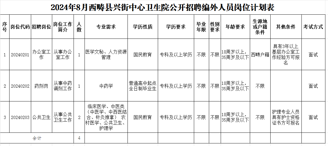 西疇縣興街中心衛(wèi)生院2024年公開招聘編外工作人員公告