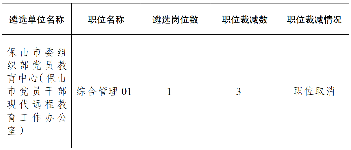 關(guān)于保山市2024年市級(jí)機(jī)關(guān)統(tǒng)一公開遴選公務(wù)員考試報(bào)名階段取消部分職位的通告