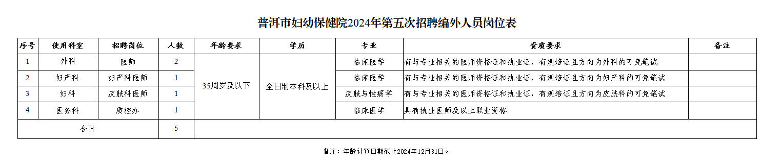 附件:附件1:普洱市婦幼保健院2024年第五次招聘編外人員崗位表.xls