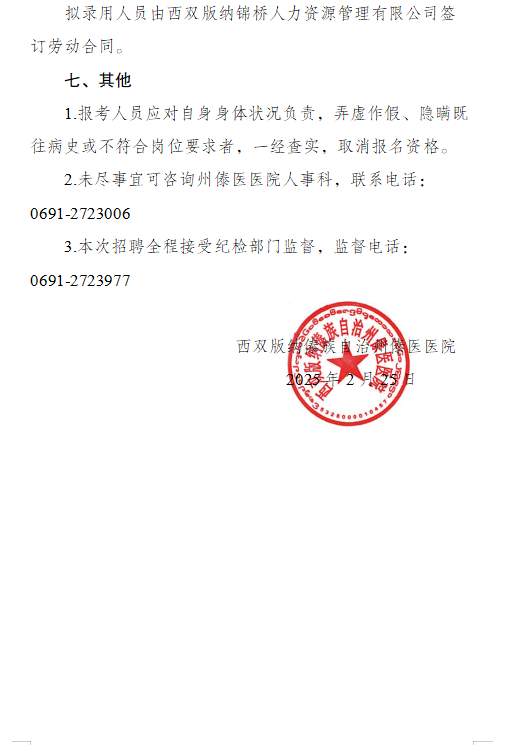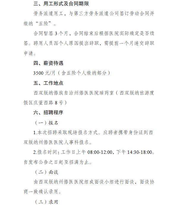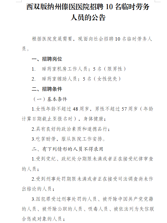 西雙版納州傣醫(yī)醫(yī)院招聘10名臨時勞務人員的公告