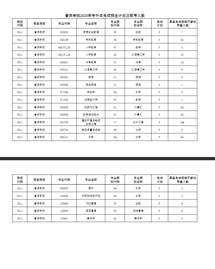 附件【普洱學(xué)院2025年專升本免試招生計(jì)劃及報(bào)考人數(shù).pdf】