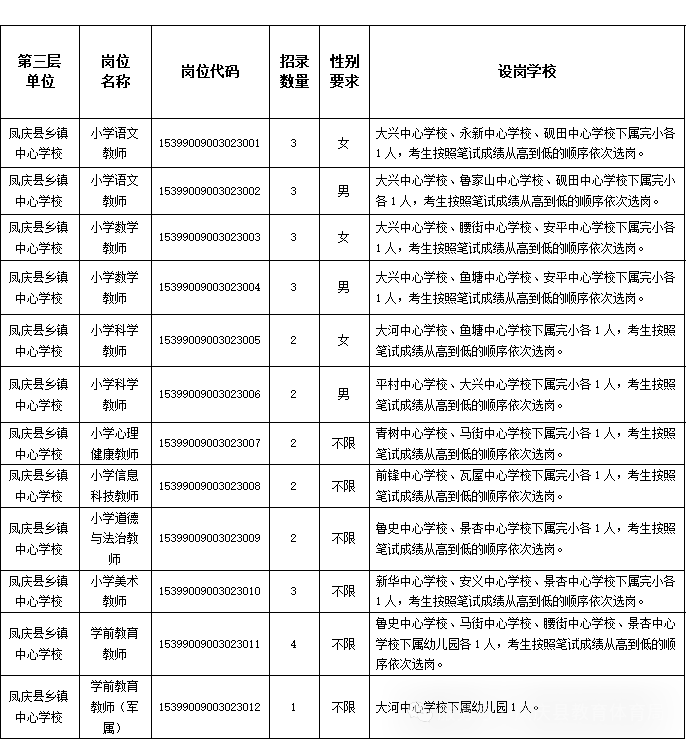 根據(jù)《臨滄市人力資源和社會(huì)保障局關(guān)于2025年全市事業(yè)單位公開招聘工作人員考試的公告》有關(guān)要求,鳳慶縣公開招聘鄉(xiāng)鎮(zhèn)小學(xué)教師30名,分為12個(gè)大崗位進(jìn)行招聘。為做好30名鄉(xiāng)鎮(zhèn)小學(xué)教師的資格復(fù)審、體檢、考察和聘用工作,經(jīng)縣人民政府審核同意,現(xiàn)將大崗位學(xué)校設(shè)置公告如下: