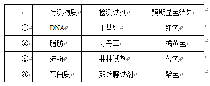待測(cè)物質(zhì) 檢測(cè)試劑 預(yù)期顯色結(jié)果