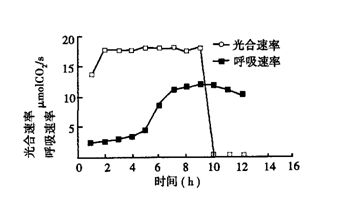 1.在充滿N2與CO2的密閉容器中,用水培法栽培幾株番茄,CO2充足。測(cè)得系統(tǒng)的呼吸速率和光合速率變化曲線如下圖,請(qǐng)回答問(wèn)題。
