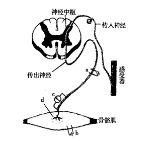 2.下圖是反射弧結(jié)構(gòu)模式圖。a、b分別是放置在傳出神經(jīng)和骨骼肌上的電極,用于刺激神經(jīng)和骨骼?。籧是放置在傳出神經(jīng)上的電位計(jì),用于記錄神經(jīng)興奮電位;d為神經(jīng)與肌細(xì)胞接頭部位,是一種突觸。