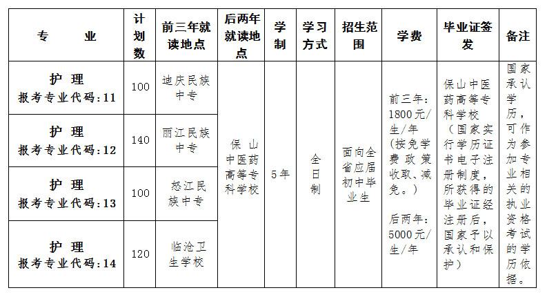 一、保山中醫(yī)藥高等??茖W(xué)校2015年招生計劃